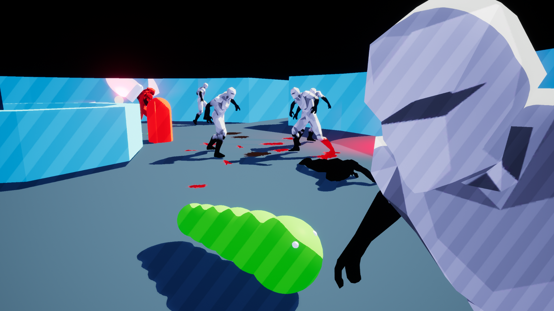 The Thingy is an asymmetrical split screen multiplayer game where one person is a parasite jumping between NPC’s trying to escape. The other player is equipped with a flame thrower trying to hunt down and eliminate the parasite. This player only has a limited amount of ammo and is only allowed to burn so many NPC’s before they lose.